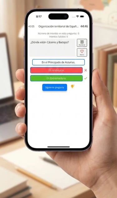 Revisa tu historial de exámenes, identifica las preguntas que más fallas y observa tu evolución. Nuestra app te muestra tus estadísticas para que sepas exactamente cuándo estás listo para conseguir tu "APTO".