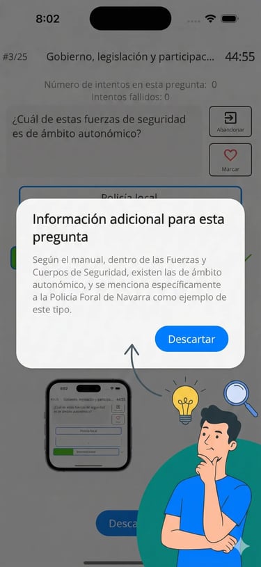 ¡No te limites a memorizar! Nuestra función estrella: cada pregunta viene con una explicación clara y concisa extraída directamente del manual oficial. Aprende el "porqué" de cada respuesta para consolidar tu conocimiento y no volver a dudar.