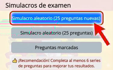 Hay un total de 300 preguntas oficiales. Para familiarizarte con el formato y las respuestas, te recomendamos encarecidamente completar al menos 6 simulacros. Esto aumentará significativamente tus posibilidades de aprobar. Sin embargo, no te detengas ahí: lo ideal es realizar aún más simulacros, ¡porque la práctica hace al maestro!