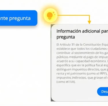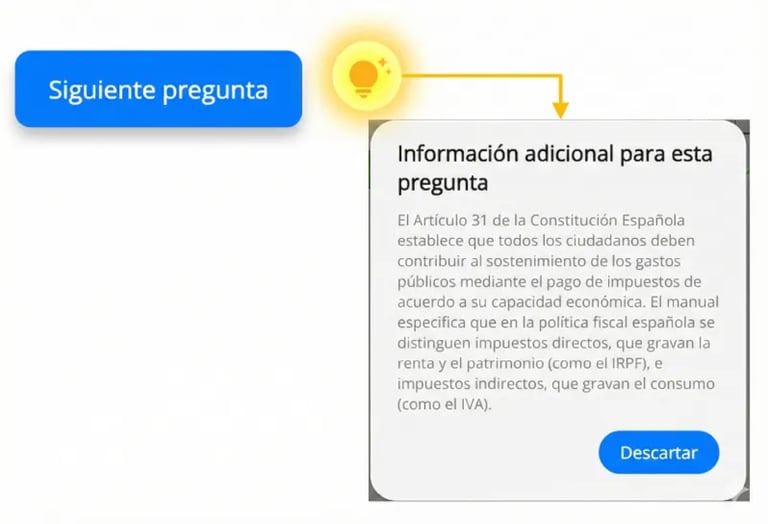 Las preguntas importantes y difíciles cuentan con una bombilla de "información adicional" que ofrece una explicación concisa.