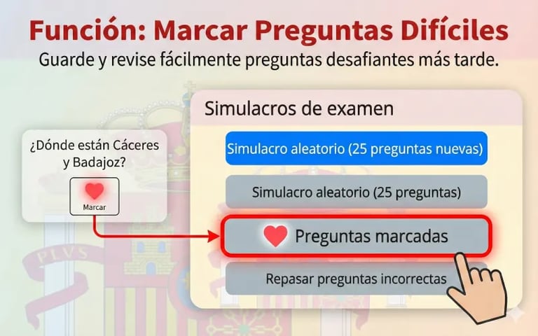 Domina el material utilizando la función de 'Marcar'; al fin y al cabo, ¡la práctica hace al maestro! Puedes encontrar y repasar tus preguntas marcadas directamente desde la pantalla de inicio de la aplicación. Para ayudarte a mejorar más rápido, las preguntas que fallas con más frecuencia se priorizan automáticamente.